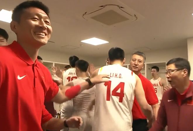 我们可以看到,中国男篮球员回到更衣室之后,也是与郭士强等教练进行不断庆祝,大家就像是夺冠一样,十分激动,十分开心,十分兴奋,十分……