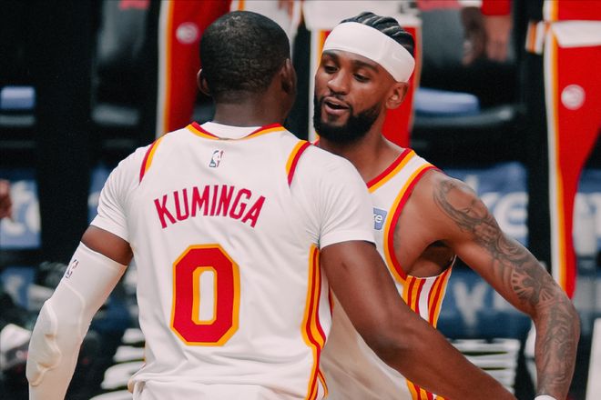 要知道全场奥孔古15中9,三分12中7爆砍25分10板6助2断1帽,不仅连续4场砍下两双追平生涯纪录,还生涯第五次单场命中至少5记三分,升至老鹰队史中锋第一,在这种情况下,替补出战且登场时间更短的库明加交出了同样的正负值,可见其本场夸张的攻防影响力。