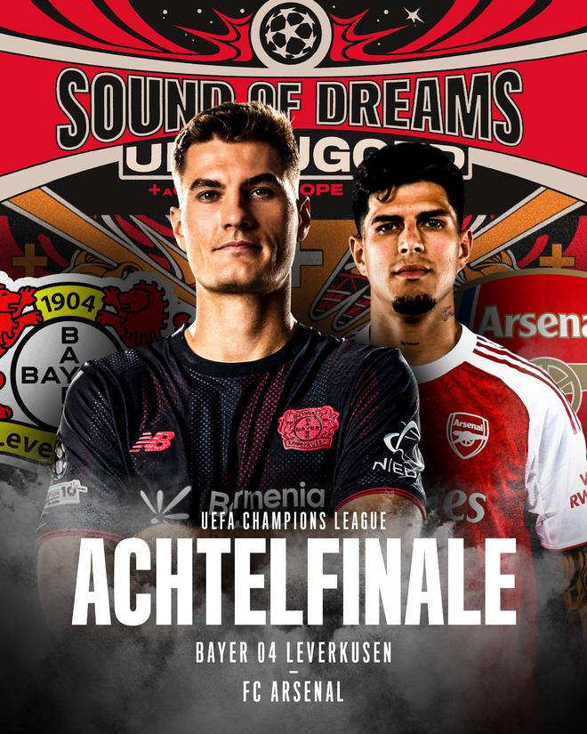2025/26赛季欧冠淘汰赛抽签结果已经出炉,阿森纳将会在1/8决赛对阵勒沃库森。