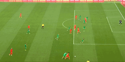 第42分钟,张玉宁头球解围不远,克劳德左脚扫射击中立柱。